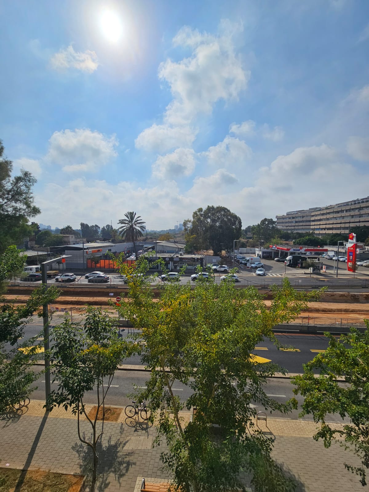 קרוב לתחנה של הרכבת הקלה הקו הירוק